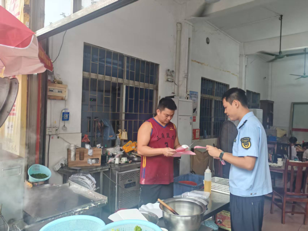 重点检查前厅与外场周边,排查花盆托盘、垃圾桶底座、空调外机接水盘等“小积水点”是否每日倾倒积水,户外积水容器是否沥干倒置;经营场所内有无堆放杂物;小花园、墙角是否存在枯枝败叶堆积形成的“天然积水区”等。同时,对后厨区域开展检查,查看操作台、地面是否有食物残渣、油污,冰柜底部、货架缝隙、排水沟盖板下是否存在积灰积水等,对存在问题的现场下达《责令整改通知书》,要求经营者立即整改。